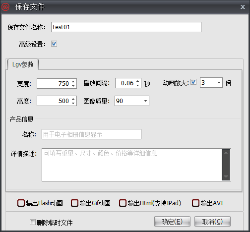 ① 保存文件設(shè)置窗口簡化。方便快速保存lgv動畫文件:
