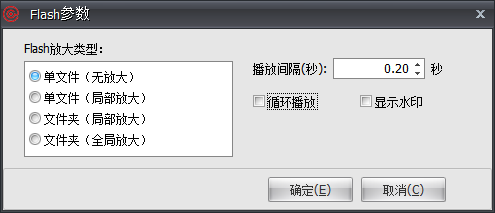 ② Flash放大類型分為兩類:【單文件】是指把所有圖片資源打包為一個swf文件,優(yōu)點是本地打開迅速,缺點是網(wǎng)絡(luò)加載較慢;而【文件夾】是指圖片和其它資源存放于一個文件夾內(nèi),優(yōu)缺點剛好與單文件相反。