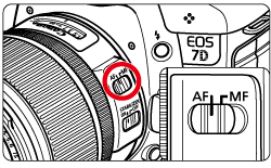 1. 將鏡頭上的對焦模式開關(guān)置于 < AF >。