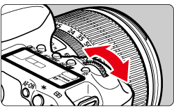3.注視液晶顯示屏的同時,轉(zhuǎn)動 < 主撥盤 > 選擇自動對焦模式。