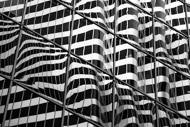 很多現(xiàn)代的建筑物也會(huì)包含大量的反光材質(zhì),這時(shí)配合外來(lái)光線,可以尋找有趣的倒影來(lái)拍攝,但記得要小心調(diào)較拍攝的角度,令反光面內(nèi)的物件較明確,容易辨認(rèn)。